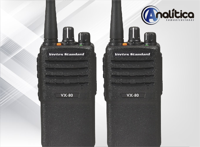 El radio VX-80 es una herramienta de comunicación rentable pensada tanto para usuarios novatos como de nivel intermedio. Se trata de un radio portátil con todas las características requeridas para garantizar una comunicación confiable a un precio asequible.